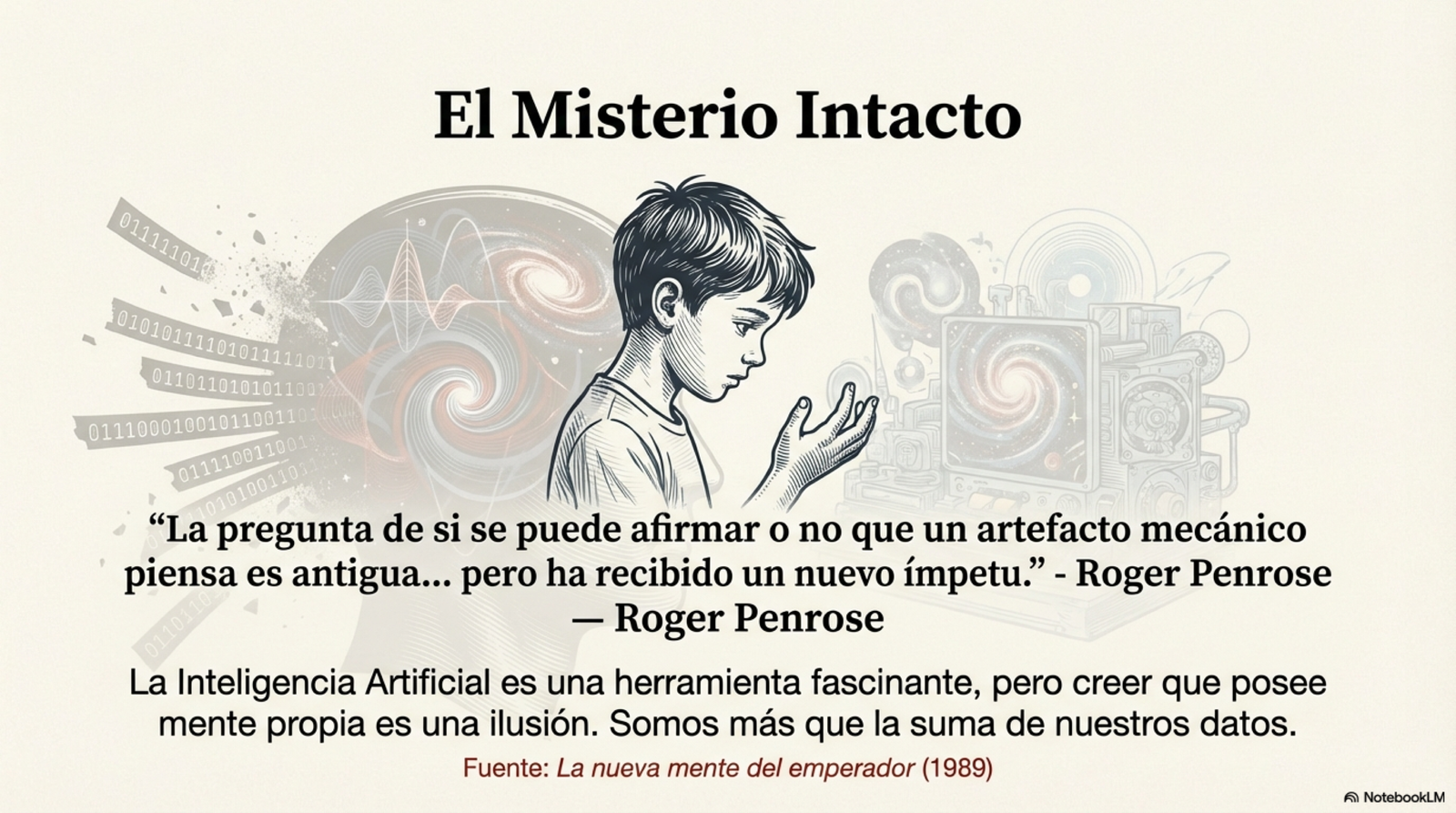 - Este post fue creado utilizado GoogleLM para resumir, analizar y crear infografías del libro "La nueva mente del emperador" de Roger Penrose
