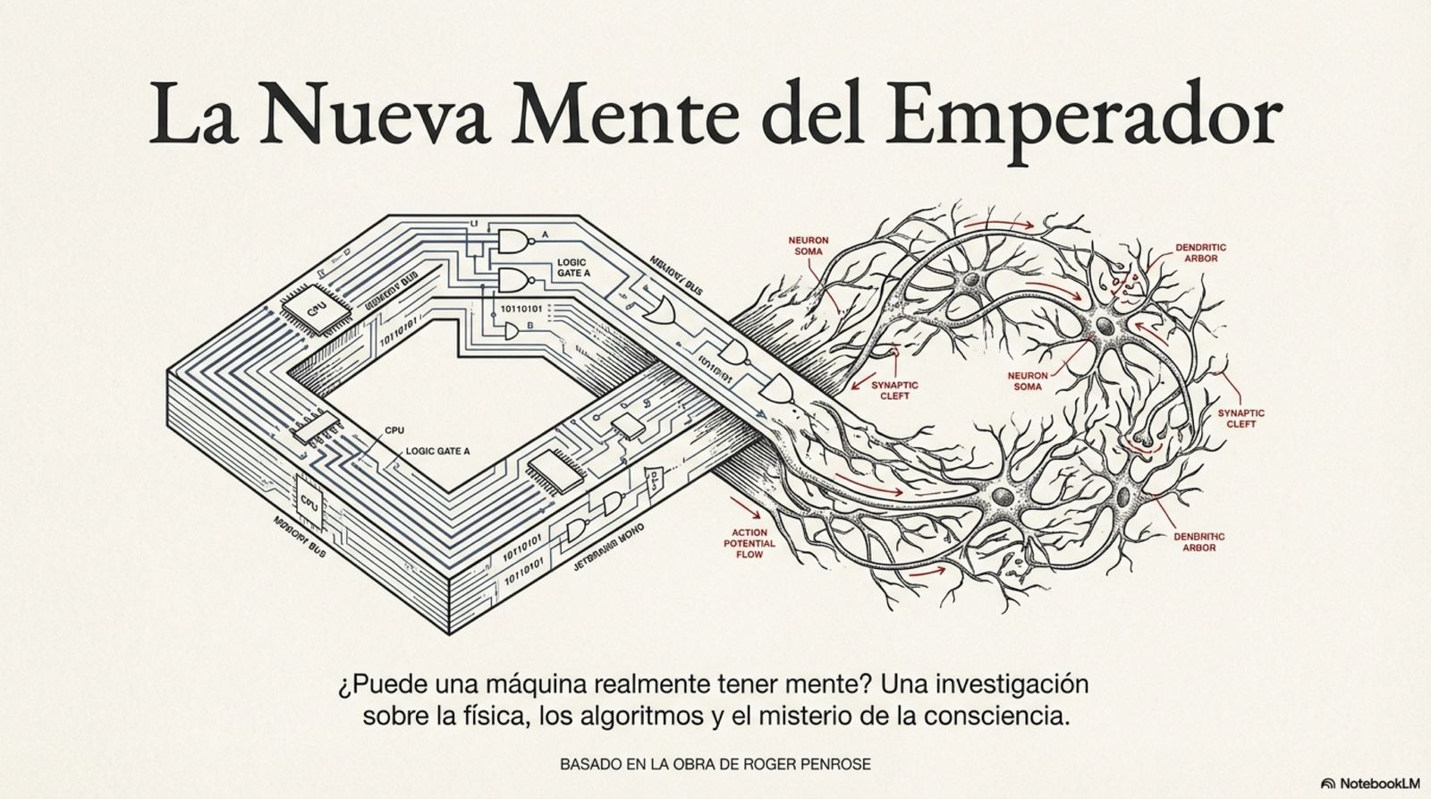 - Este post fue creado utilizado GoogleLM para resumir, analizar y crear infografías del libro "La nueva mente del emperador" de Roger Penrose